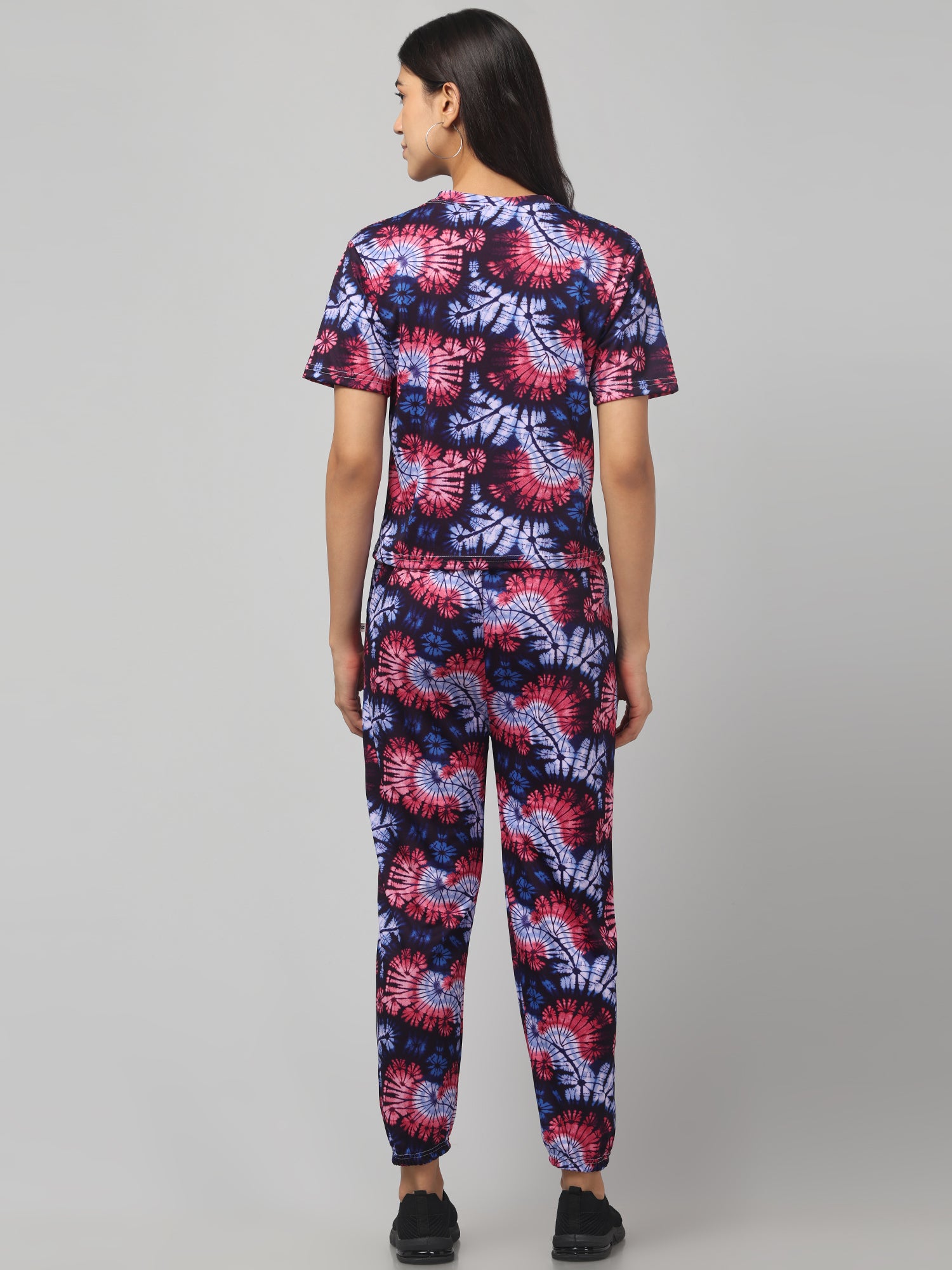 Make a bold statement with our Firework Bloom Co-ord Set, featuring a vibrant burst of red, blue, and purple hues in a stunning tie-dye floral pattern. Crafted from soft, stretchable fabric, this two-piece set offers both comfort and style — perfect for lounging in style or stepping out with flair. The fitted jogger-style pants and matching tee create a flattering silhouette that moves with you. Pair it with sneakers or slides for a laid-back yet fashionable look.